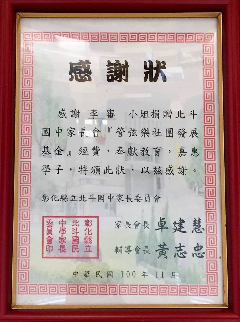 厚橋,德屋,李審,贊助,北斗國中,北斗國中管弦樂社團,管弦樂社團,慈善企業,公益慈善
